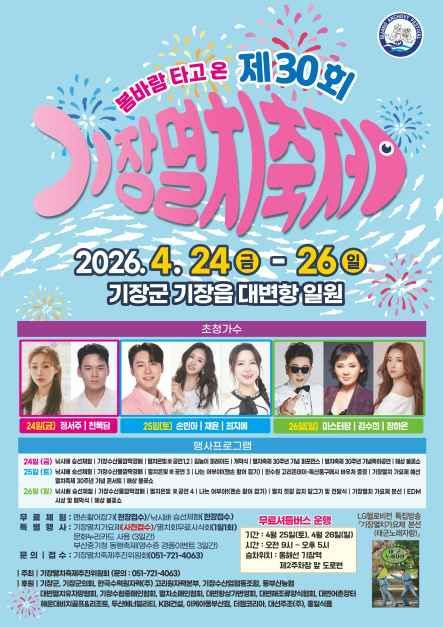 대변항의 정취를 만끽하는 낚시배 승선 체험과 멸치회 무료 시식, 활기 넘치는 수산물 깜짝 경매는 축제의 대표적인 즐길거리다. 30주년의 의미를 담은 길놀이 퍼레이드와 기념 퍼포먼스, 밤하늘을 수놓는 해상 불꽃쇼는 대변항만의 특별한 볼거리를 선사한다. 또한 맨손 활어잡기와 기장멸치가요제, EDM 파티 등 전 세대가 함께 즐길 수 있는 다채로운 체험 프로그램이 축제 기간 내내 펼쳐진다.