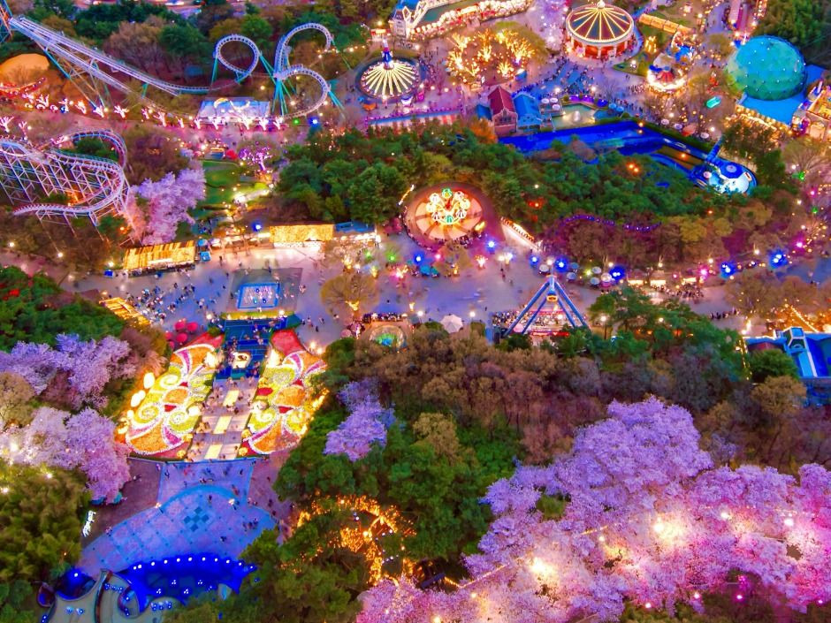 낮에는 핑크색 벚꽃을, 밤에는 라이팅 쇼와 함께 화려한 빛으로 물든 벚꽃의 색다른 모습도 즐길 수 있다.