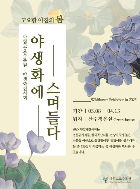 야생화전시회는 겨울에서 봄으로 바뀌는 계절 변화를 가장 먼저 마주할 수 있는 아침고요의 전시회이다. 멸종위기식물, 한국특산식물, 관상가치가 높은 식물을 메인으로 동강할미꽃, 깽깽이풀, 붉은대극 등 총 120점의 아름다운 봄 야생화를 만나볼 수 있다.