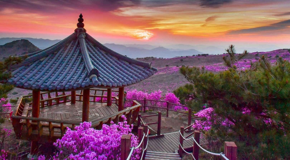 비슬산 참꽃군락지는 따뜻한 햇살을 받으며 활짝 피어나 30만 평 대지 위를 분홍빛으로 물들인다. 참꽃이 만개하는 봄날, 달성군의 대표 축제 <비슬산 참꽃문화제>가 2025년 4월 12일(토), 13일(일) 주말 양일간 개최된다. 비슬산 곳곳에는 유서 깊은 사찰과 문화유적들이 산재되어 있다. 천왕봉 정상에 올라 바라보는 능선은 수묵으로 그려놓은 듯 아름답다. 전망 데크에서 아래를 내려다보면 낙동강 물줄기가 산지를 따라 굽이쳐 흐른다. 대견사를 돌아 조금 더 걷다보면 진분홍빛의 드넓은 화원이 눈 앞에 펼쳐지고 군락을 가로지르는 걸음마다 참꽃이 피어나는 감동적인 순간을 선사한다. 올해도 어김없이 <비슬산 참꽃문화제>에서 화려한 봄의 향연이 펼쳐진다.