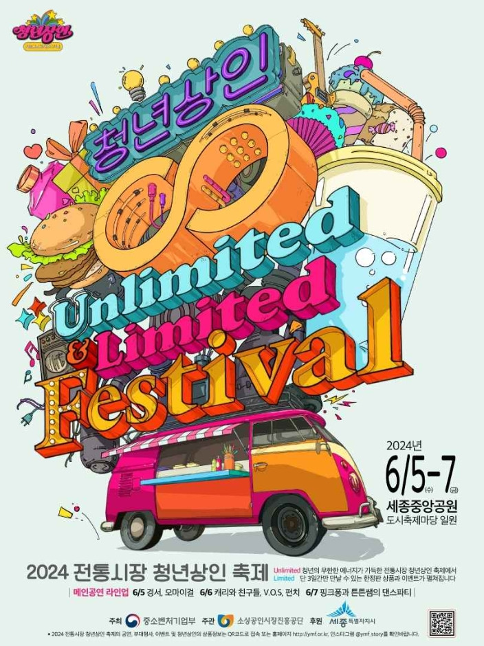 2024 전통시장 청년상인 축제는 중소벤처기업부가 주최하고 소상공인시장진흥공단이 주관, 세종시가 후원하는 'Unlimited 청년이 만드는 Limited 축제' 이다.