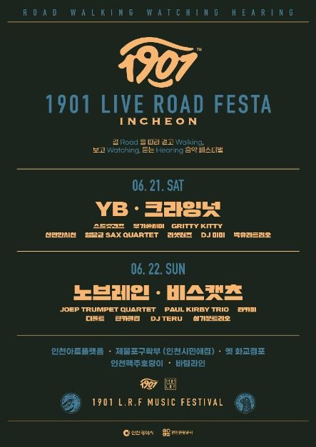 1901 라이브로드 페스타는 개항기 서양음악의 교류 발상지인 인천 제물포의 역사성과 정체성을 기반으로 기획된 도심형 음악 축제이다. 2025년 6월 21일부터 22일까지 이틀간 인천 개항장 일대에서 개최되며, 인천아트플랫폼 중앙광장을 중심으로 제물포구락부, 옛 화교점포, 인천맥주 호랑이, 버텀라인 등 지역 공간에서 총 6개국 19팀의 아티스트가 공연을 진행한다. 공연은 재즈, 포크, 밴드, DJ 등 다양한 장르로 구성되며, 관람객은 각 공연장을 도보로 이동하며 음악과 공간을 함께 체험하는 방식으로 운영된다. 본 축제는 전석 무료로 진행되며, 기존 대형 무대 중심 공연과 차별화되는 몰입형 거리형 콘텐츠로, 인천 고유의 도시문화자산을 활용한 복합형 관광 프로그램이다.