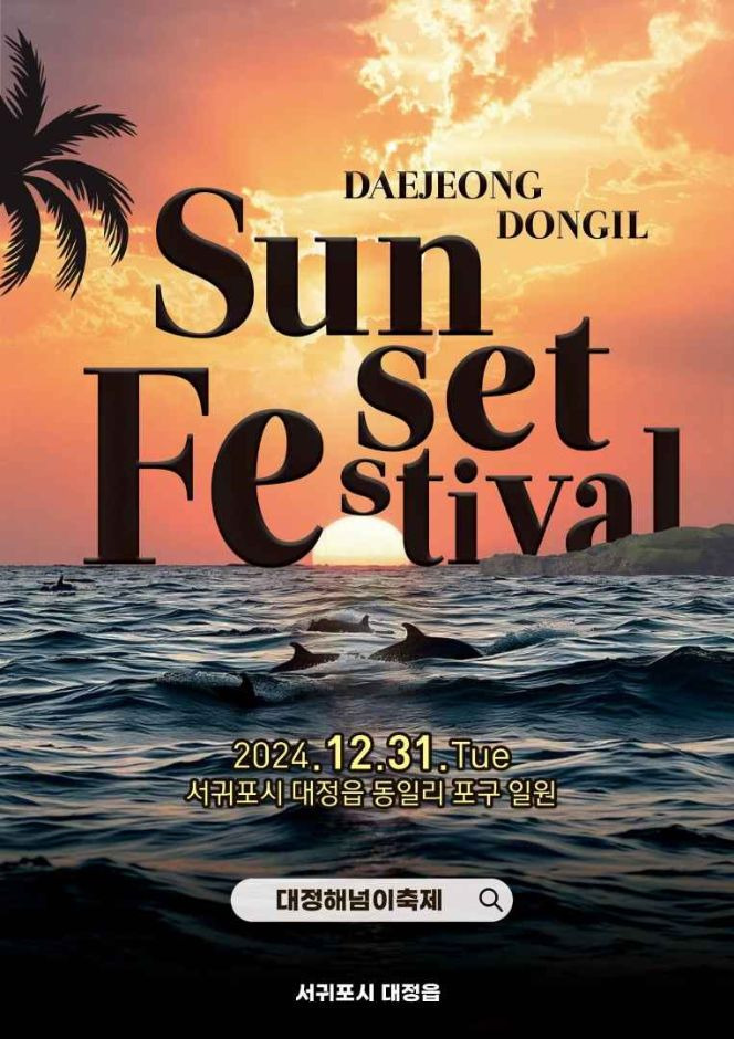 서귀포시 대정읍 동일리는 돌고래가 자주 출몰하기로 유명하고, 제주에서 해가 가장 늦게 뜨고 지며, 바다로 지는 해가 아름다운 마을이다. 12월 31일, 한 해의 마지막 날 아름다운 석양과 함께 마무리를 짓고, 다가오는 새해의 무사안녕을 비는 일몰 축제가 열린다. 주민과 따뜻한 음식을 나누고, 해 질 녘 해변을 배경으로 달집태우기를 즐길 수 있는 축제이다. 붉게 물드는 수평선과 그 위로 사라지는 달집들만 바라보아도 한 해를 보내는 시간을 가지기에는 부족함이 없다.