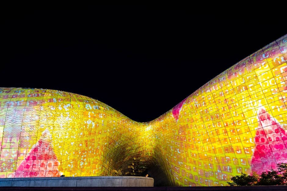 DDP 곡면 파사드는 빛과 영상으로 도시의 리듬을 담아내며, 살아있는 유기체처럼 끊임없이 변화한다. 올해 처음 선보이는 미래로 다리 아래 레이저 연출은 기둥과 구조물 사이의 대비를 통해 파사드에 역동성과 긴장감을 더한다. 이 빛의 흐름은 관객의 시선과 움직임을 작품의 일부로 흡수하며, 작품과 관객이 상호 작용하는 하나의 생태계를 형성하는 축제이다.