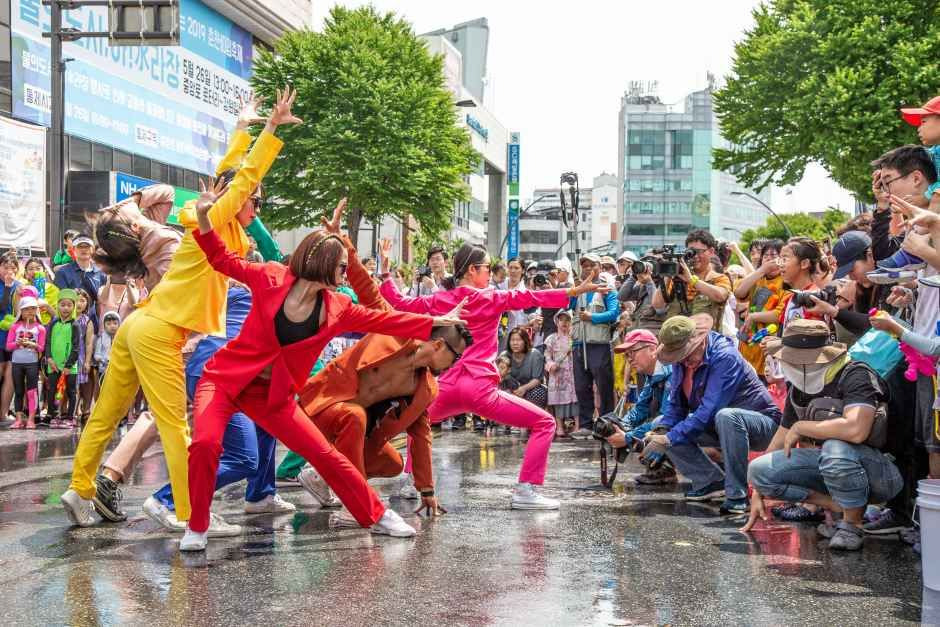 - 개막 프로그램. 4차선 도로를 막고 진행되는 한바탕 물난장과 예술가들의 거리 퍼포먼스