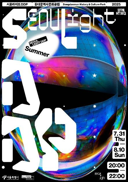 DDP 개관 최초, <서울라이트 DDP> 개최 최초로 여름 시즌에 선보이는 이번 행사는 참여형 미디어아트 축제로 새롭게 변화한다. 또한, 기존의 222m DDP의 비정형 파사드를 벗어나, 수공간 오픈과 함께 새로운 공간으로 탈바꿈하는 DDP 동대문역사문화공원에서 펼져진다. <서울라이트 DDP 2025 여름>은 성곽 미디어파사드, 레이저쇼, 라이팅 인스톨레이션, 반응형 미디어 콘텐츠 등 다양한 빛의 요소들이 결합되어, 몰입감 있는 예술적 경험을 제공할 예정이다.